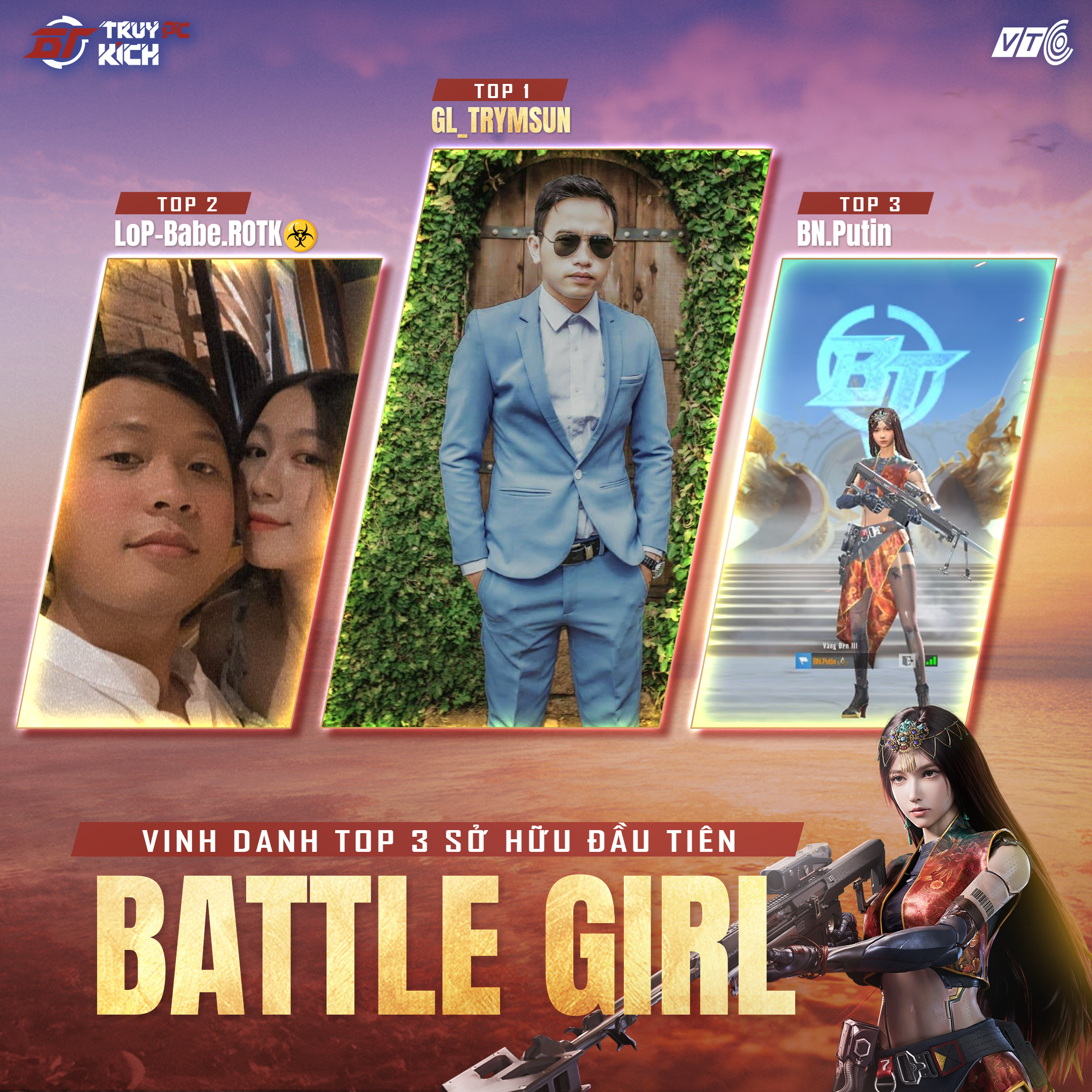 Chỉ chưa đầy 1 tiếng, chúng ta đã tìm ra gương mặt của những xạ thủ chinh phục được cô nàng máy móc Battle Girl sớm nhất chiến trường. Đây đều là những gương mặt uy tín và cực kì quen thuộc trong cộng đồng game thủ chơi Truy Kích PC!